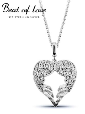 Hopeasta valmistettu säihkyvä kahdesta siivestä muodostuva sydämenmuotoinen riipus. Ketjun pituus on 40 -45cm.