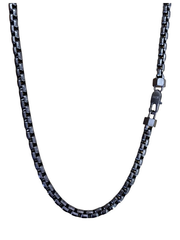 Tyylikäs hiilenmusta ketju. Ketjun leveys on 5,8mm ja pituus 50 tai 55cm Ketju on helposti lyhennettävissä. Näyttävä ja kestävä koru.