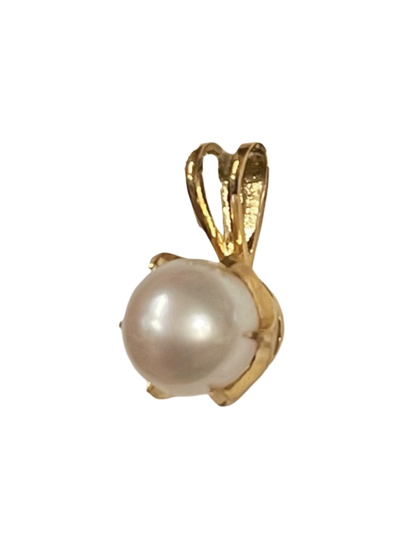 14k kultainen riipus 6mm viljellyllä makeanveden helmellä. Tukeva istutus! Ei sisällä ketjua.