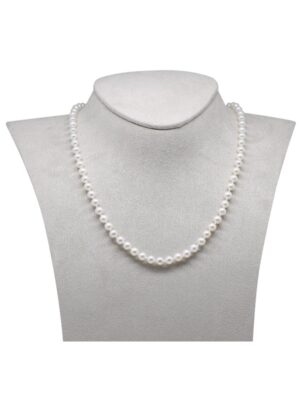 Kaunis helminauha kaulaan pyöreällä hopealukolla. Laadukkaat, lähes pyöreät ja hyvän kiillon omaavat valkoiset AAA-luokan helmet.