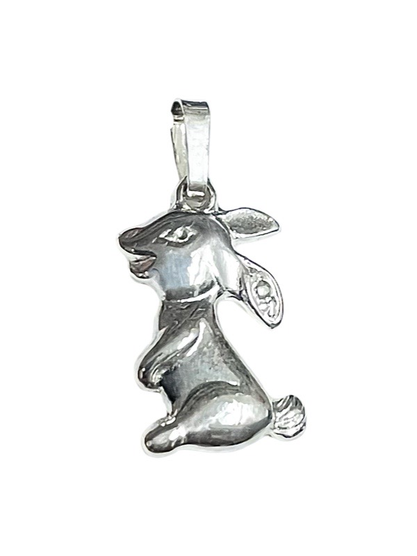 Hopeasta valmistettu suloinen Pupu-riipus ketjulla tai ilman. Ketjuna riipukseen sopiva hopeinen panssariketju.
