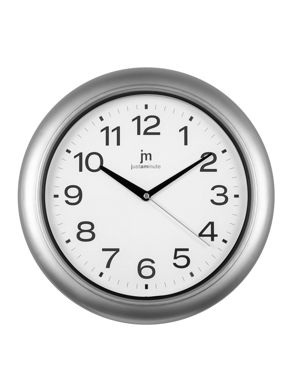 Pyöreä Justaminute 00976S seinäkello on väriltään harmaa ja taulu valkoinen. Selkeät numerot. Lähes äänetön liukusekuntiosoitin. Paristo AA x 1kpl.