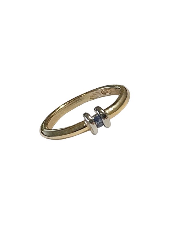 Suloinen 14k kultainen kummisormus pienellä sinisafiirilla.