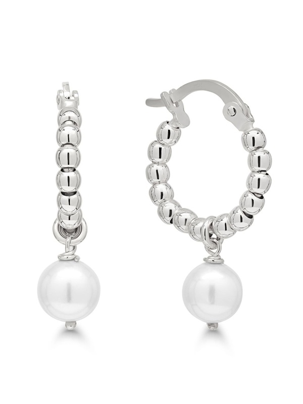 Kauniit hopeasta valmistetut rengaskorvakorut synteettisellä helmellä.