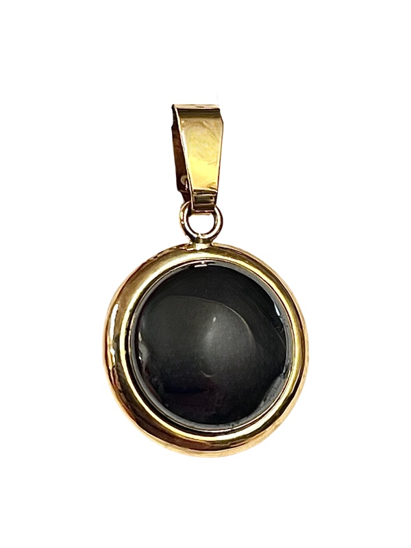 Keltakultainen riipus hematiitilla. Ei sisällä ketjua.