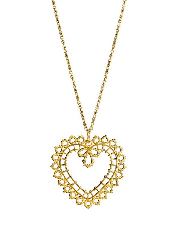Lempikoru Pitsisydän iso riipus on valmistettu keltakullatusta hopeasta. Korun on suunnitellut Carina Blomqvist.