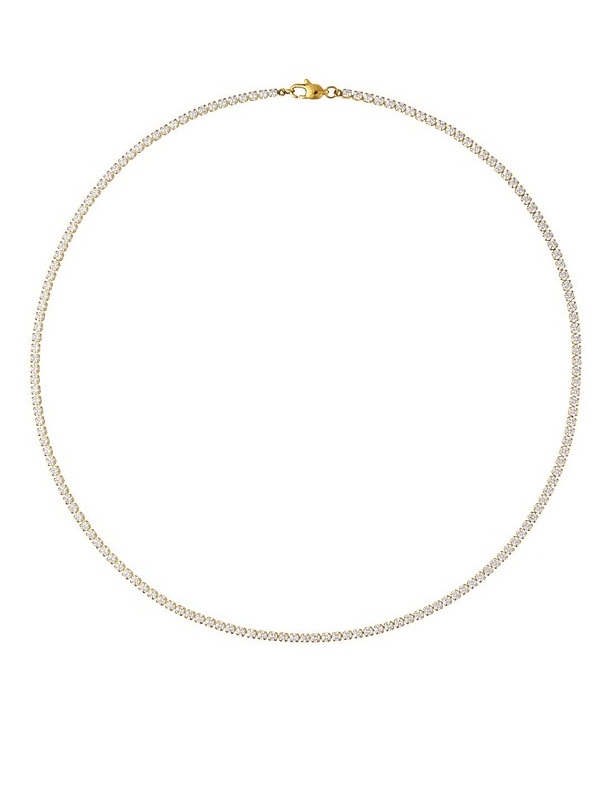 Tennis Necklace on kaulakoru, jossa säihkyvät zirkoniat kulkevat koko ketjun pituudelta. Valmistettu ruostumattomasta teräksestä ja päällystetty 18K kullanvärisellä PVD-pinnoitteella – kestävä ja vedenkestävä, säilyttää värinsä ja kiiltonsa ajan myötä.