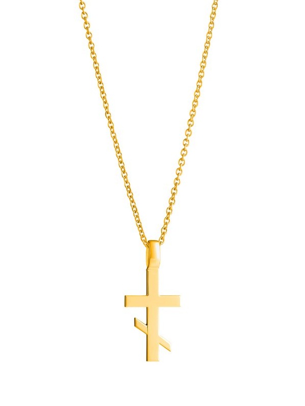 Kullatusta hopeasta valmistettu Ortodoksiristi. Tukeva ankkuriketju. Valmistettu Suomessa.