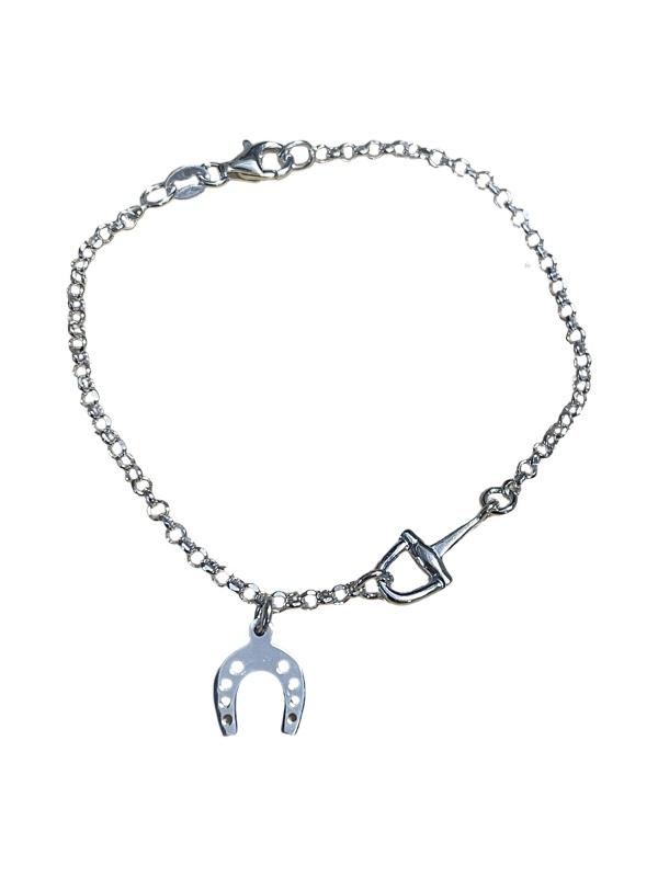 Hopeasta valmistettu ranneketju hevosenkengällä. Ketjun pituus on 17,5cm.
