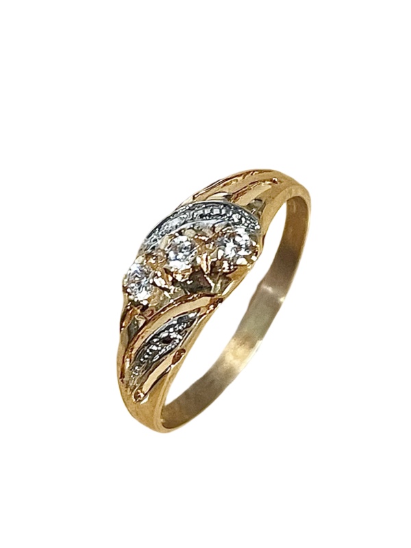 Näyttävä 14k kultainen korusormus kirkkailla kivillä. Koko 16,5