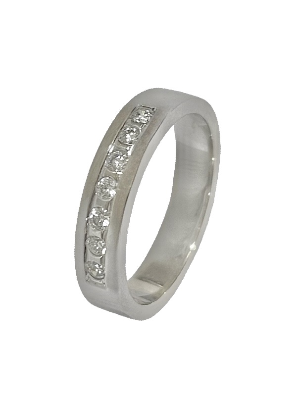 Upea valkokultainen timanttisormus. Sormukseen on mahdollista kaivertaa esim. etunimi ja päivämäärä. Kaiverrus on maksuton. Kaiverretuilla tuotteilla ei ole vaihto- eikä palautusoikeutta. Koko 18-