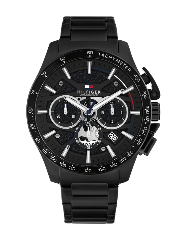 Tommy Hilfiger Miesten rannekello TH1792262 on valmistettu ruostumattomasta teräksestä. Kuoren ja rannekkeen väri on musta. Kellossa on kronografi ja päivyri.